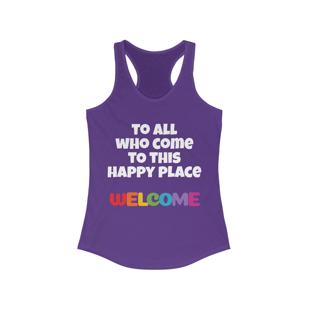 All Who Come to this Happy Place Racerback Tank